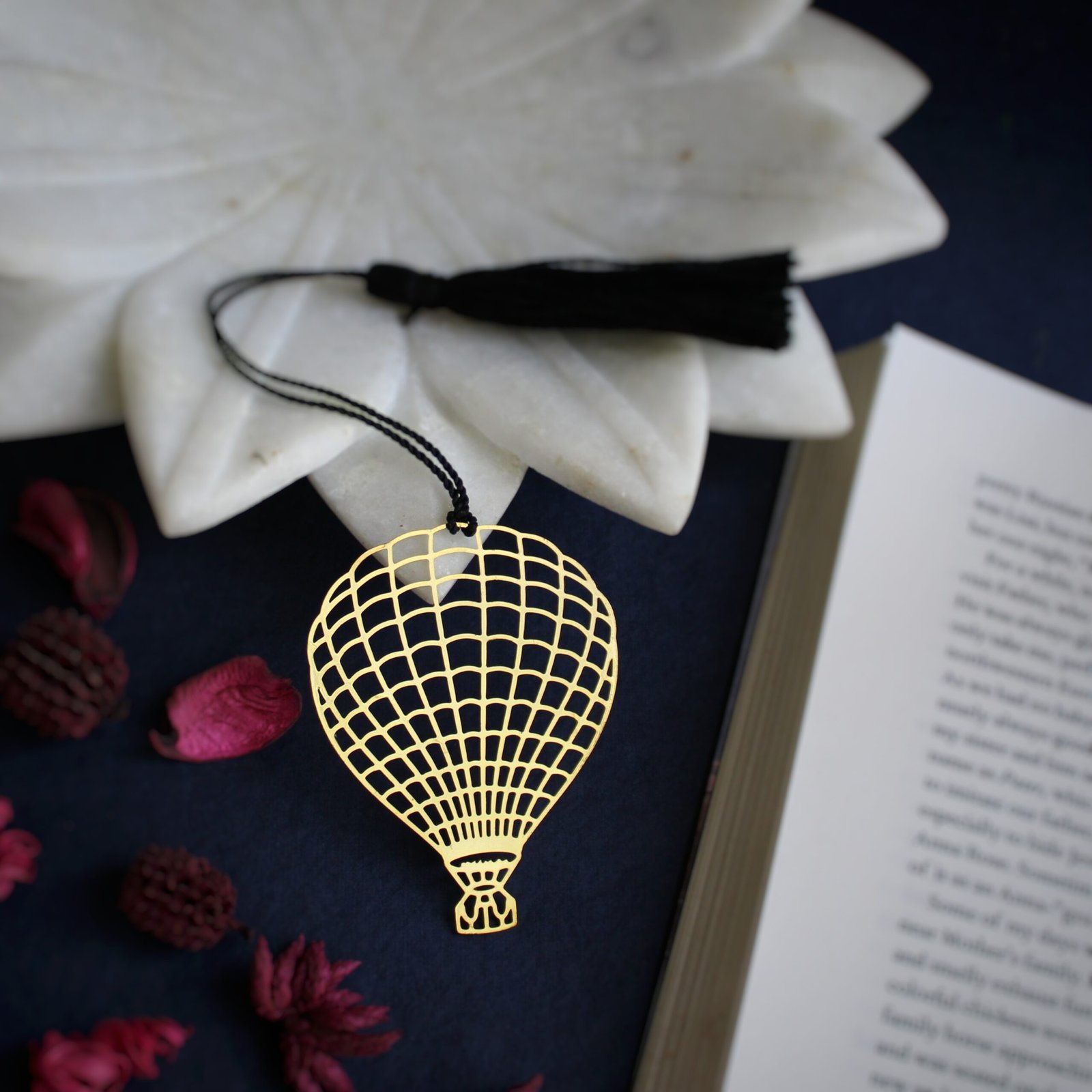 Design Features: This eco-friendly brass bookmark features a finely detailed hot air balloon, floating in the sky with grace. The brass finish adds a touch of adventure and whimsy, perfect for readers who enjoy exploration and discovery.
