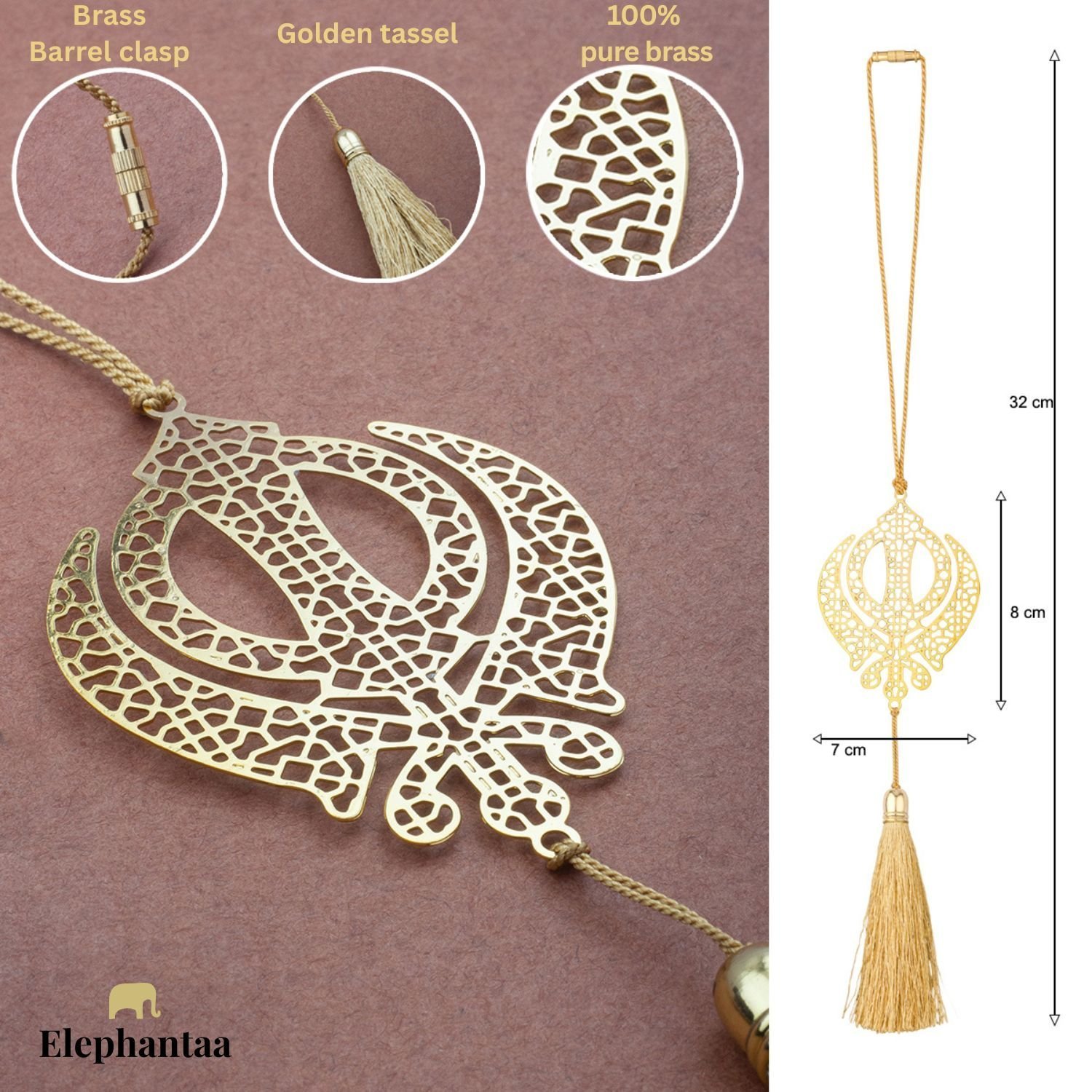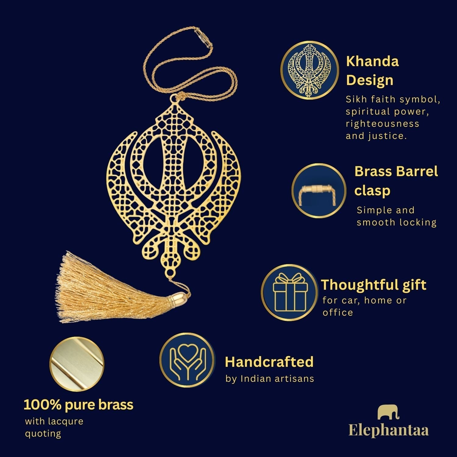Made from solid brass, the piece showcases the revered Khanda symbol in crisp detail, highlighting the craftsmanship of traditional metal artisans.